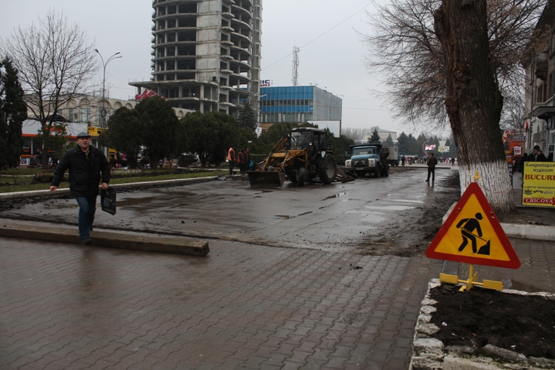 С 6-го марта в центре Бельц на непокрытой плиткой части площади В.Александри работает экскаватор.Работы ведёт муниципальное предприятие ДРСУ.