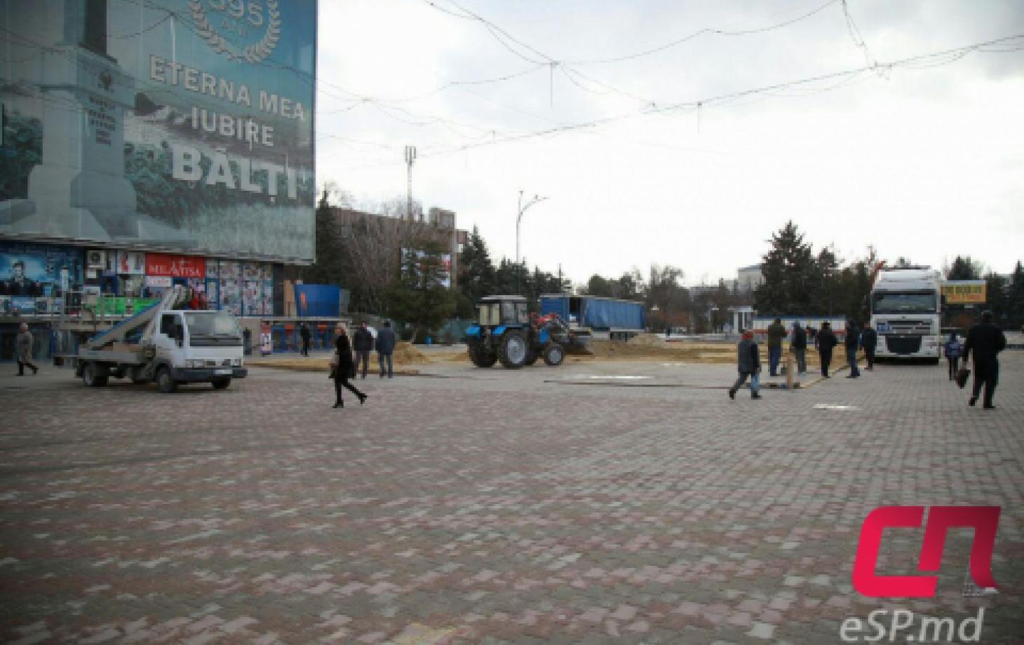 На центральной площади Бельц начали устанавливать ледовый каток.