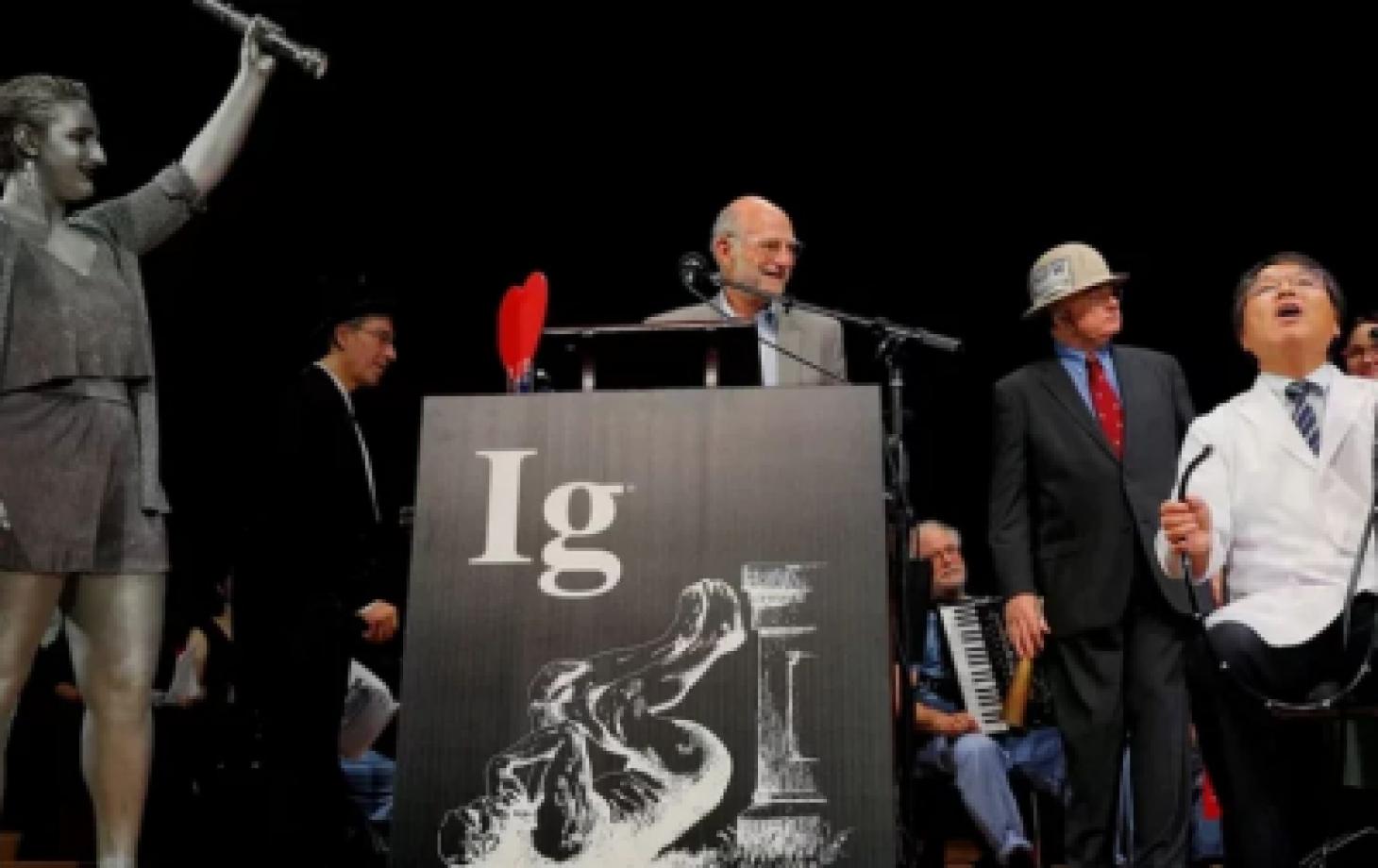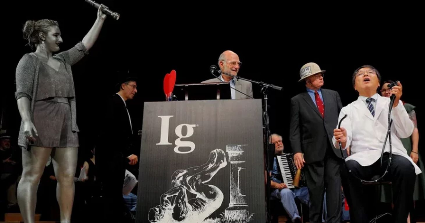 У церемонии есть свои давние традиции. Зрители запускают в зал бумажные самолётики, а слишком длинные речи прерывает восьмилетний ребёнок словами: «Пожалуйста, прекратите. Мне скучно». В программу также входят музыкальные выступления учёных и оперных певцов и лекции в формате «24/7», когда учёные сначала объясняют свою идею за 24 секунды, а потом укладывают её в семь слов.