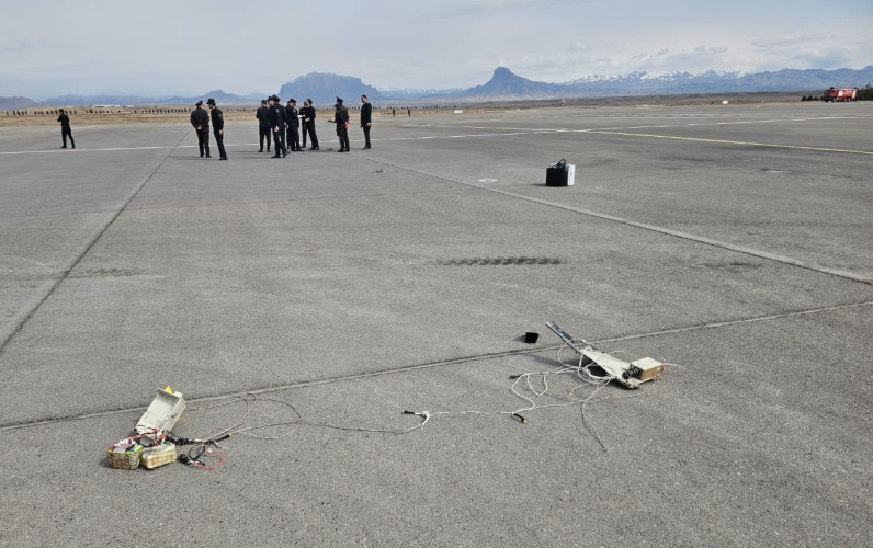 Обломки беспилотника, упавшего на территории аэропорта. Фото: azertag.az.