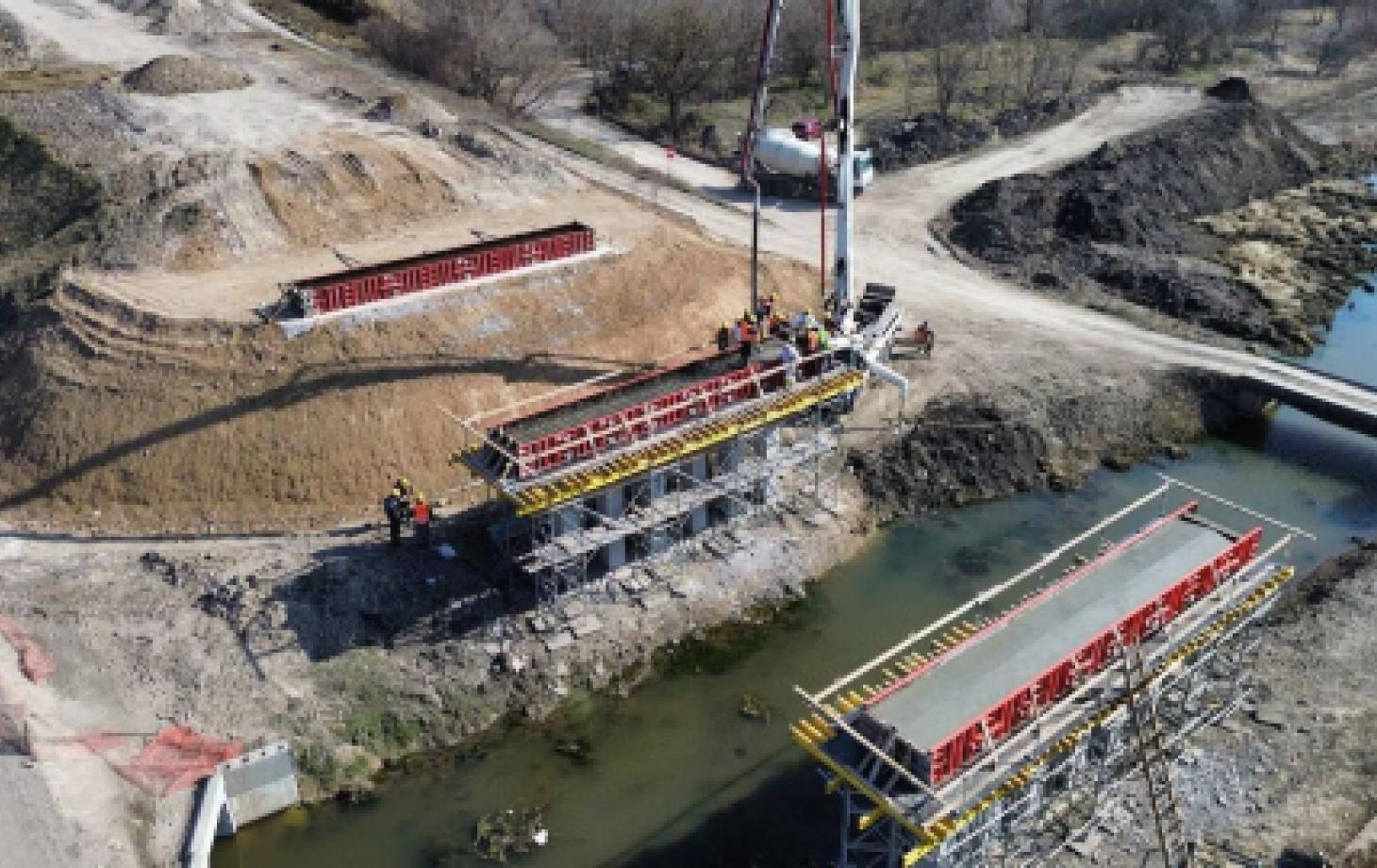 На мосту через Рэут уже выполнена заливка ригелей на устоях и опорах, готовность этого вида работ достигла примерно 80 %. Фото: facebook.com/anddrum