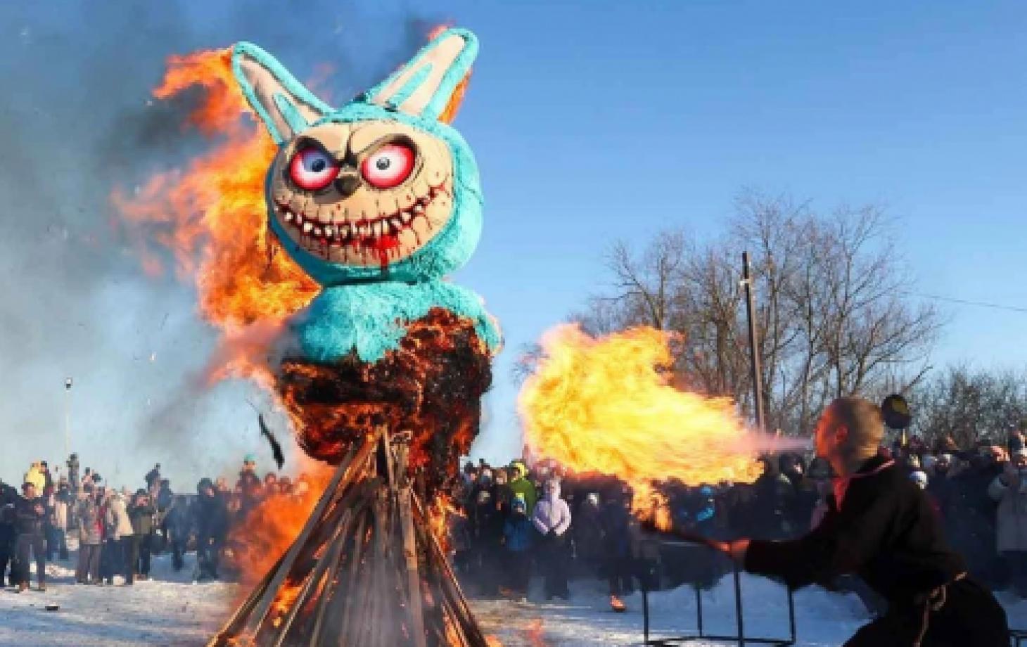 Гигантское чучело Лабубу сожгли на Масленицу в Липецкой области