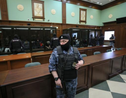 Суд по делу о теракте в «Крокусе» начался в августе прошлого года, он проходил в закрытом режиме. Фото: EPA / Scanpix / LETA